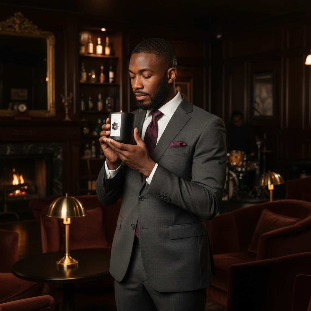 GENTLEMEN'S CLUB: 12 oz glass vessel, wood wick, wood lid